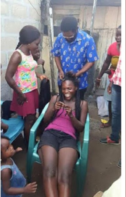 decided to cook, braid hairs and chat with people from his constituency. See photos after the cut