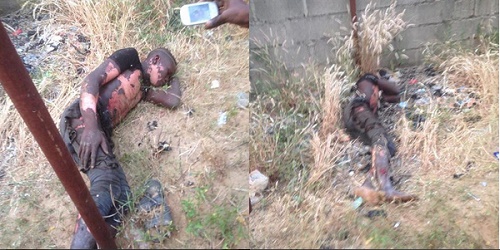 Nemesis has caught up with a thief... the man barely survived after he tried to steal transformer cables at the State School of Nursing, Maiduguri, Borno State.