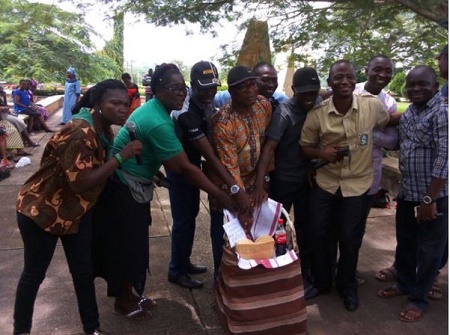 So to send their grievance home, they organised a mini-birthday bash and presented the V.C a coke and bread at his office, Friday afternoon.