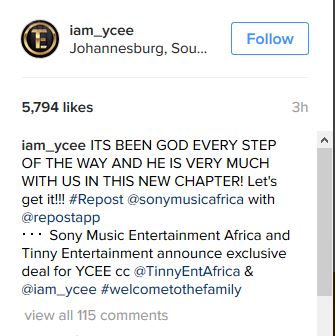 Nigerian rapper popularly known for his stage name Ycee has just signed a multi million Naira deal with Sony Music Entertainment today, Friday, October 21, 2016 in South Africa.