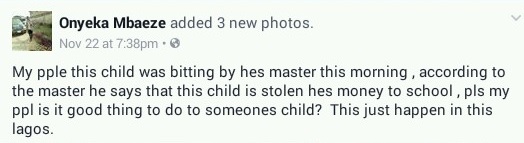 "My people this child was beaten by his master this morning ,