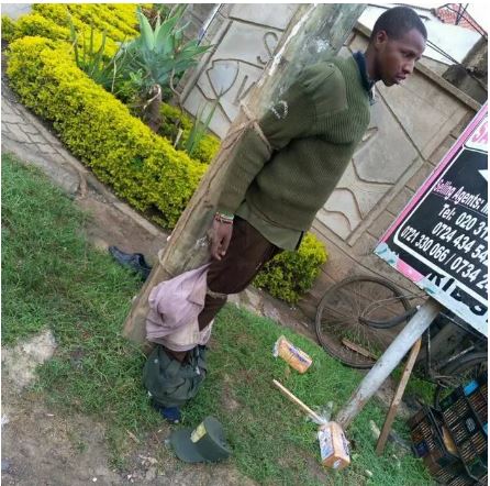 As soon as he had picked the loaves, locals swiftly emerged descending on him with kicks and blows, before tying him to a pole.
