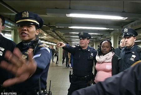 Metropolitan Transportation Authority worker said Liverpool-Turner looked 'proud' as she was led away by police officers.